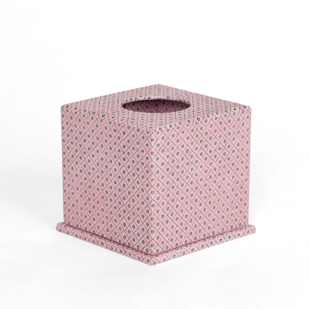 Hand Block-Printed Tissue Box - Pink