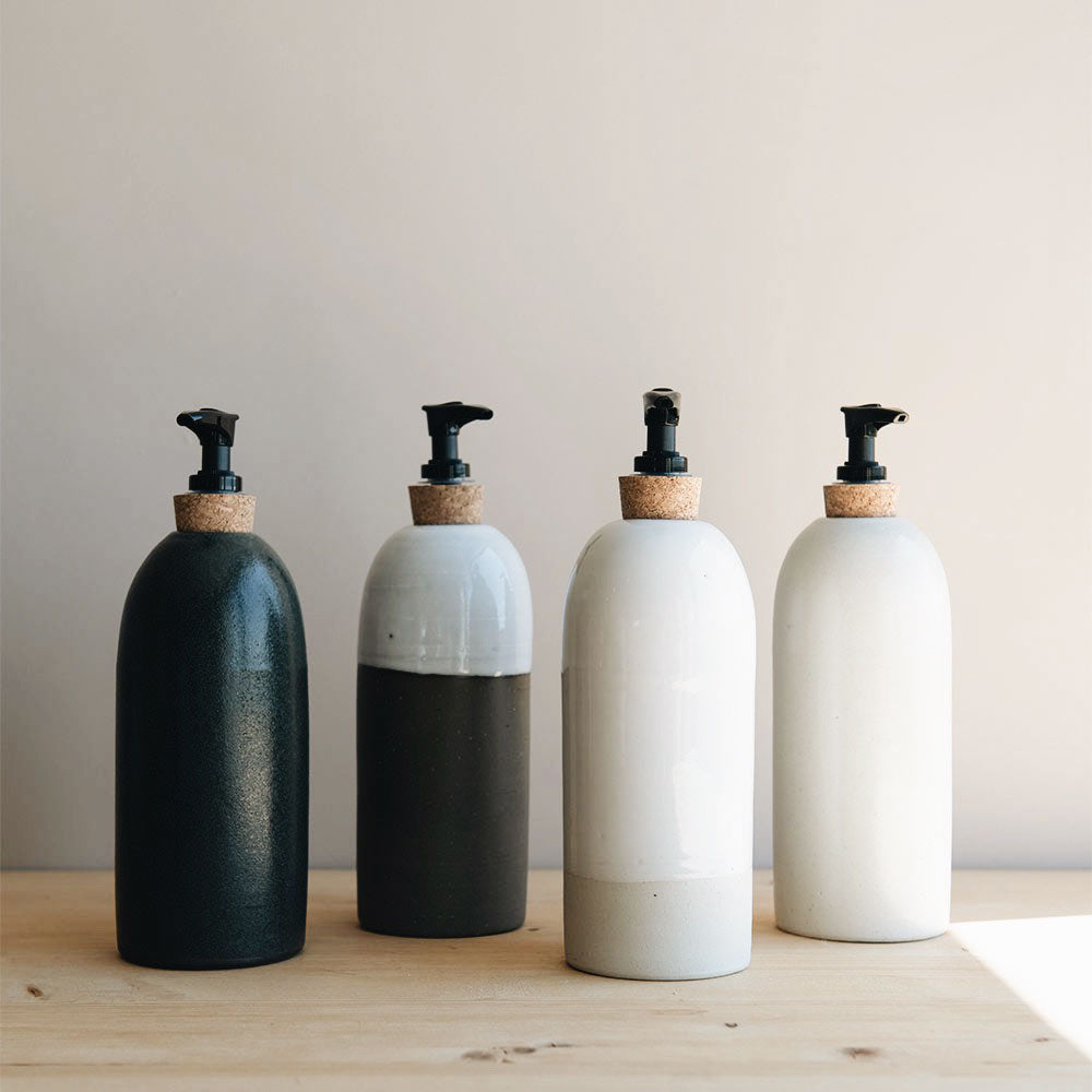 Beautiful, handcrafted soap dispenser. Available in four stunning glazes.