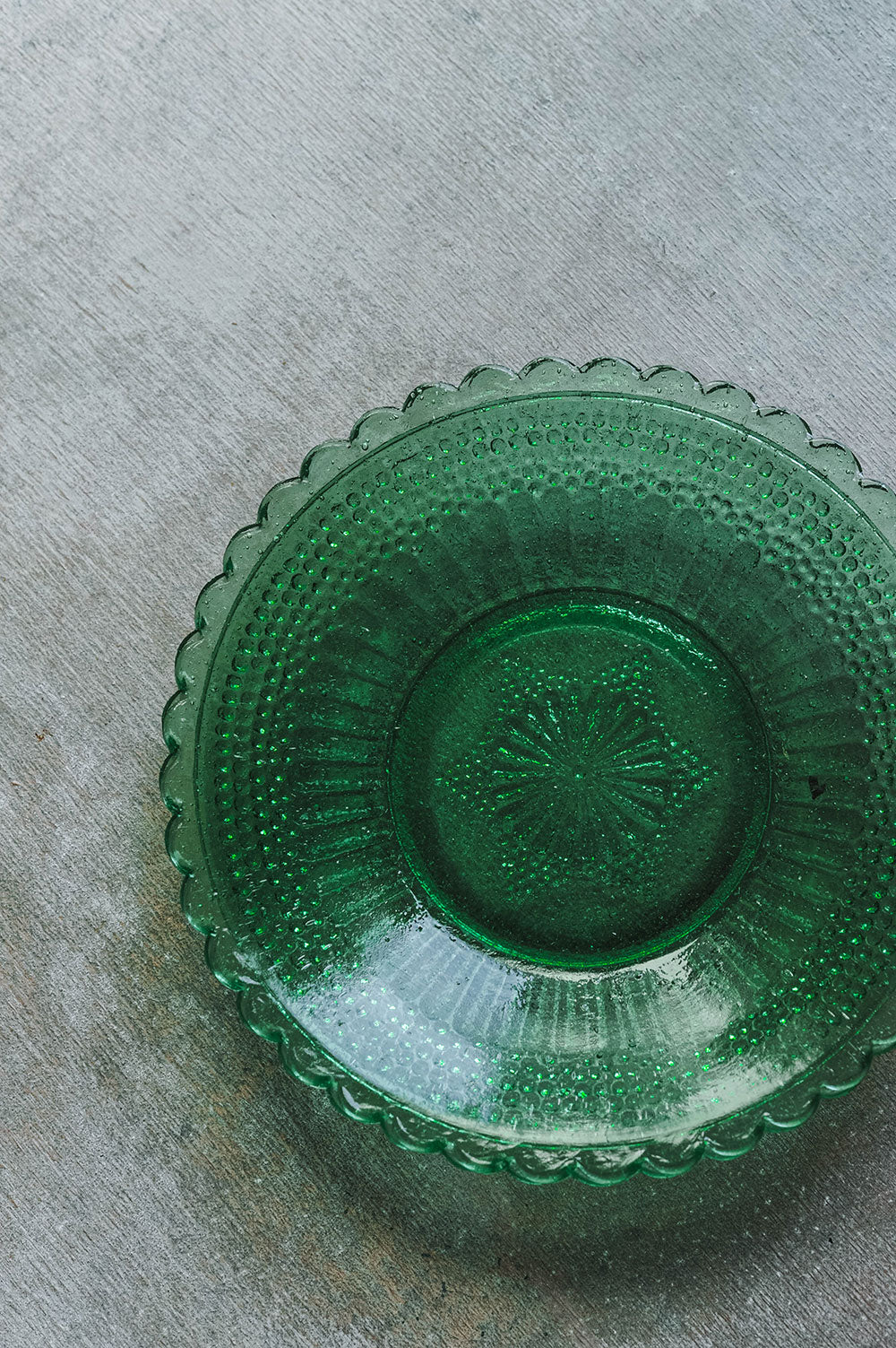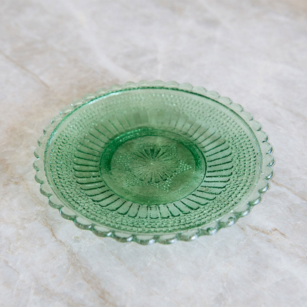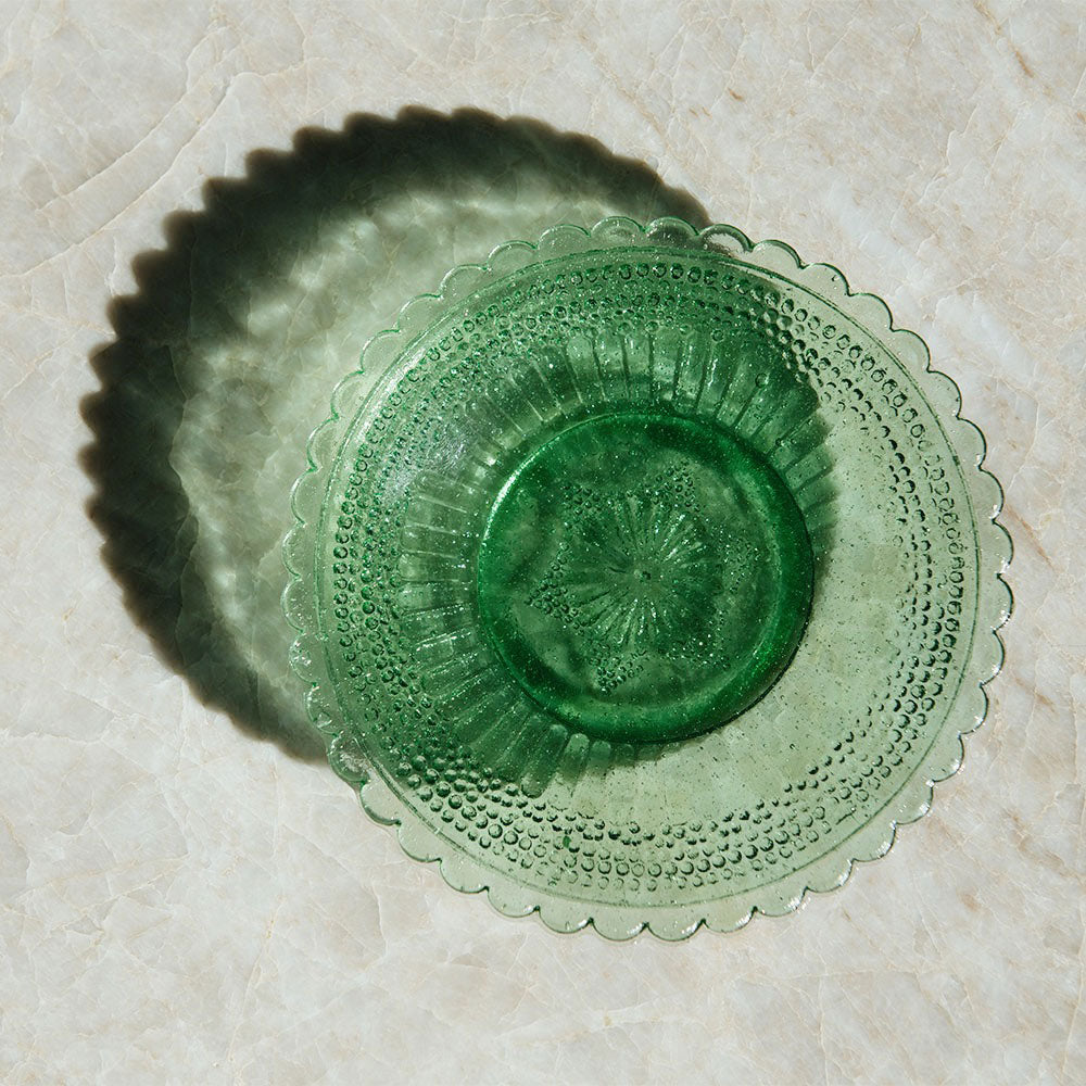 Made from recycled glass and shaped using 19th-century molds, this plate is crafted in a family-run Mexican workshop that has been producing glassware since 1935. It’s a versatile piece, perfect as a catchall for small treasures or as a graceful layer on your table.