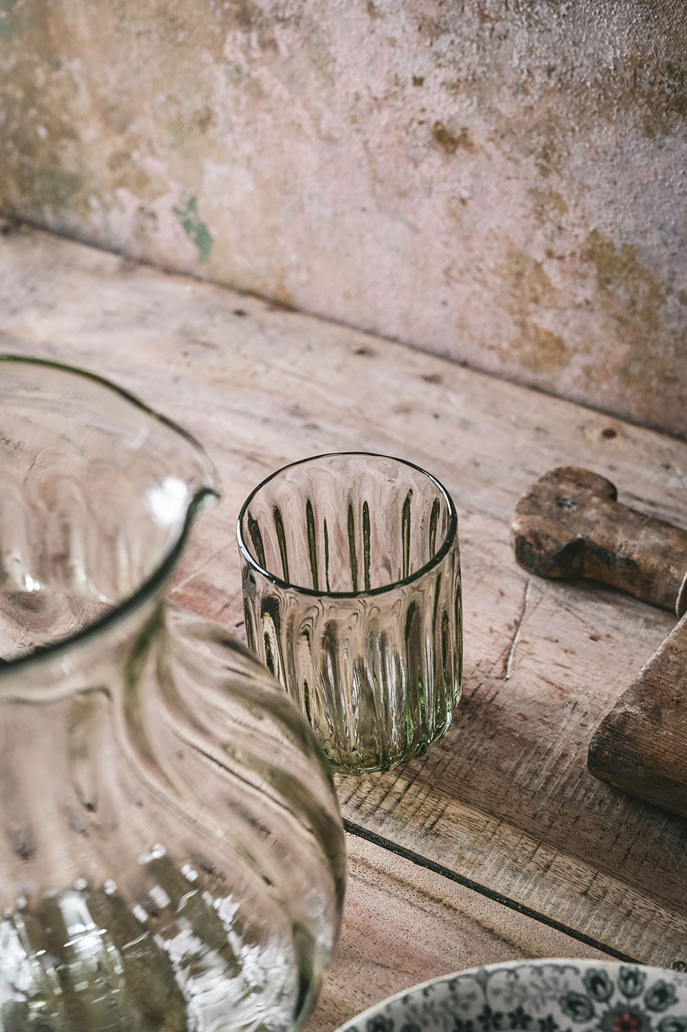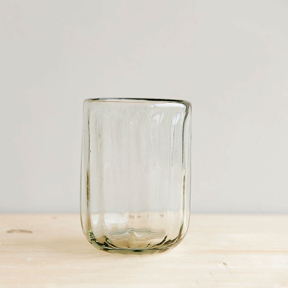 Beautifully shaped and sustainable, these tumblers are handblown from recycled glass and feature a fluted design.