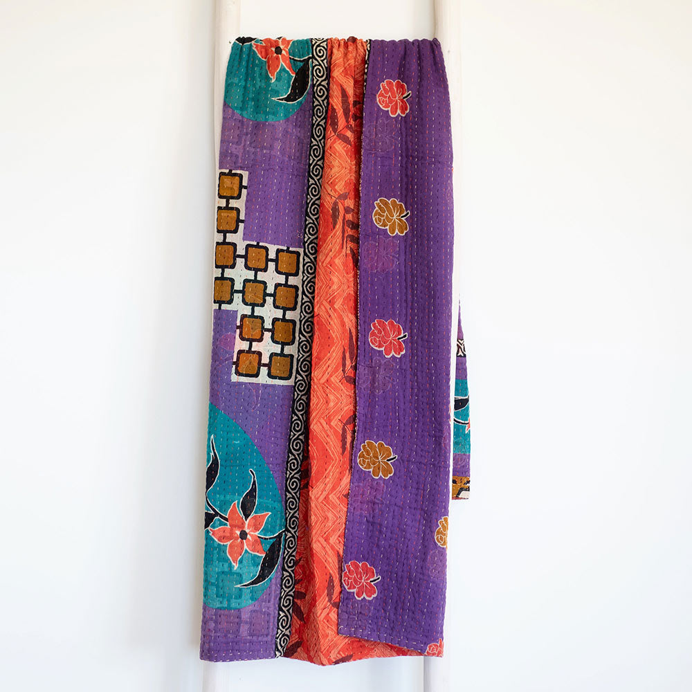 - multiple quilted layers of reclaimed sari material make this Kantha throw thicker and warmer