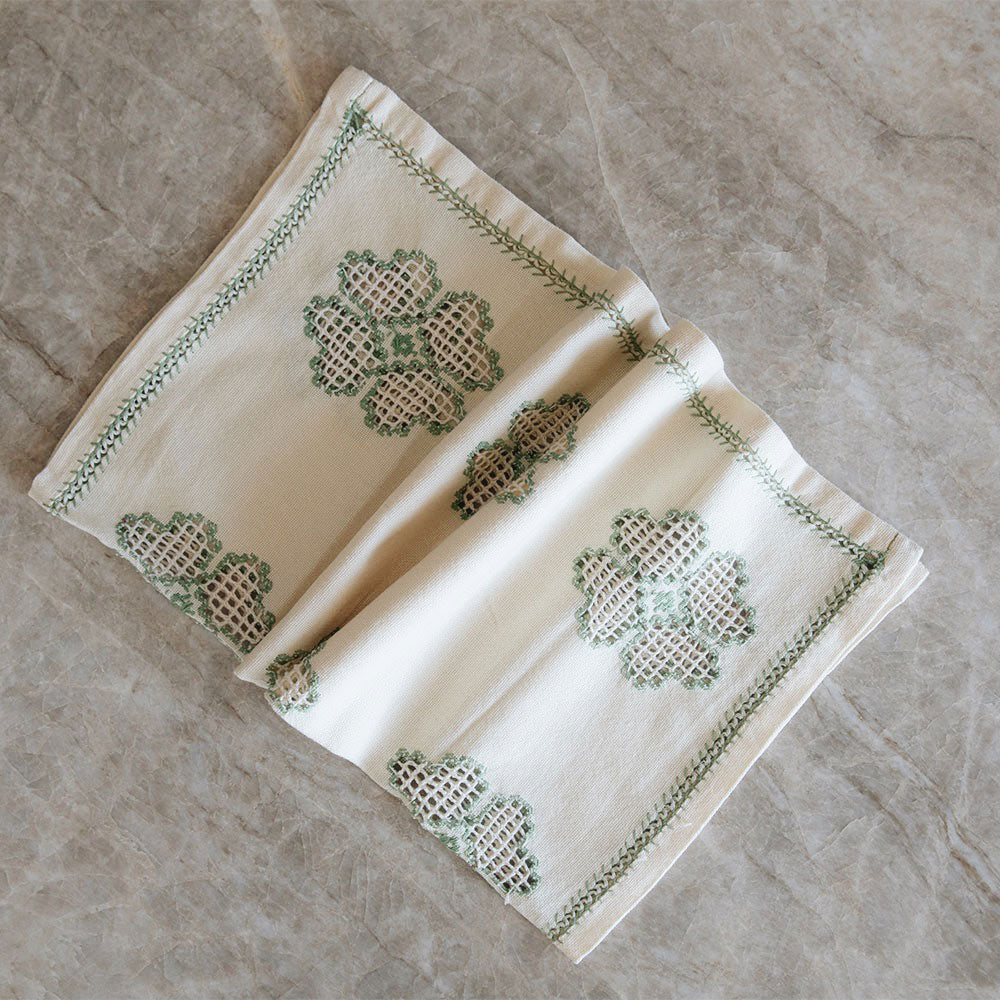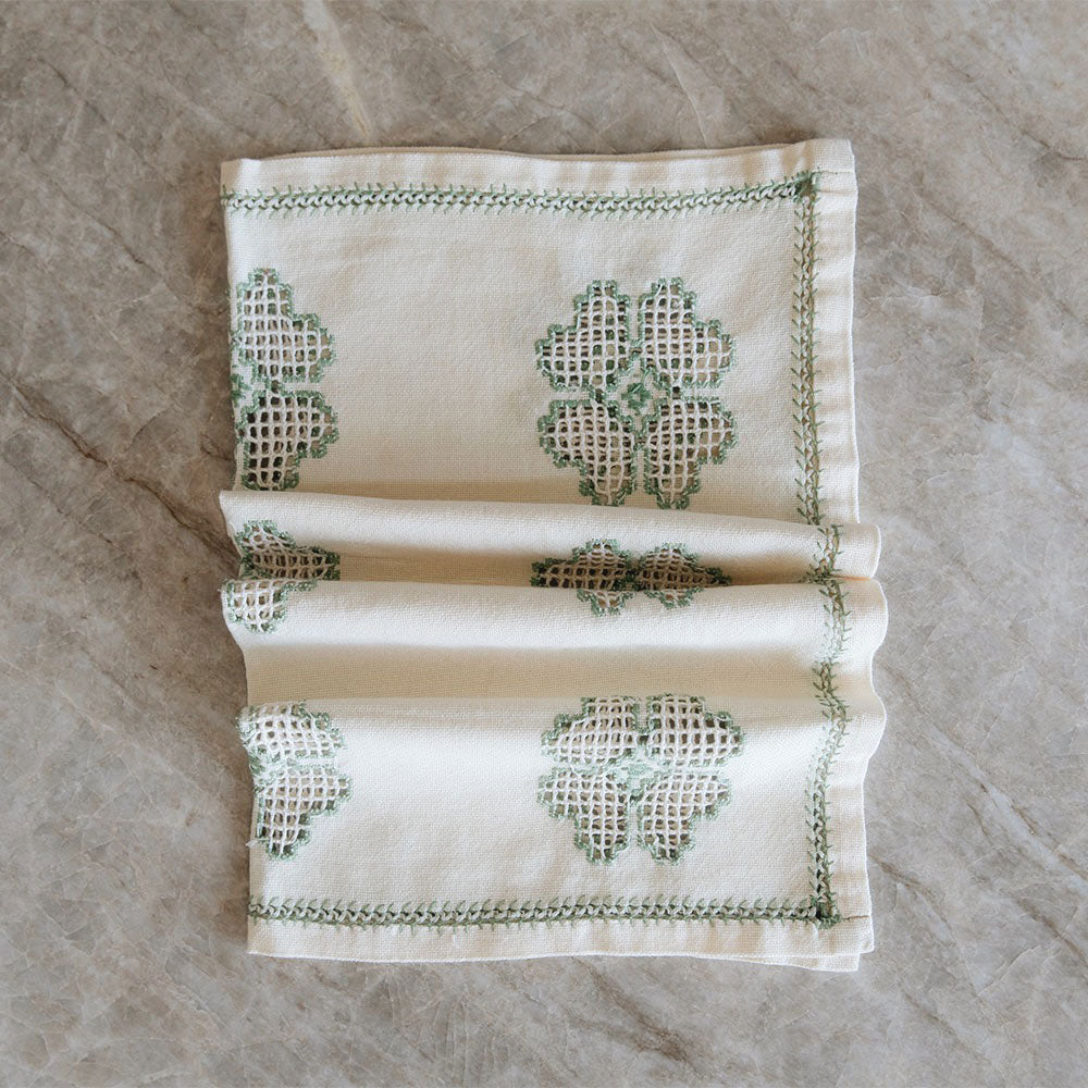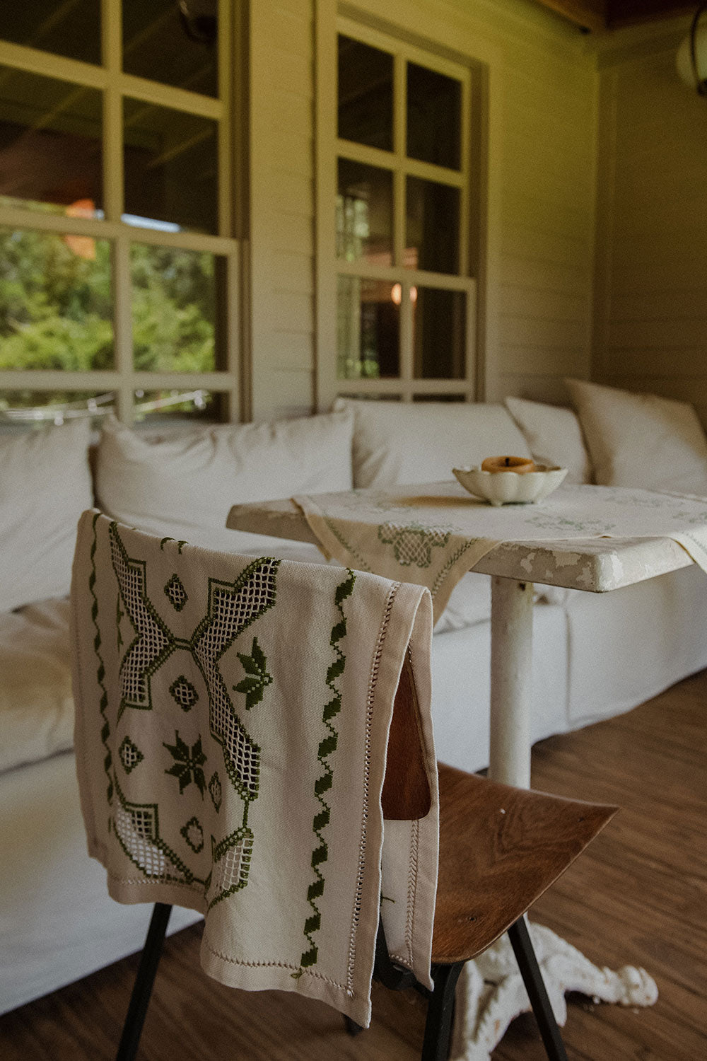 Handcrafted table throw with a soft, effortless drape, finished with the delicate beauty of pulled thread work. This traditional needlework technique, deeply rooted in Romanian heritage, involves carefully pulling threads from woven fabric to create intricate patterns and designs. This technique is often used in combination with embroidery to produce stunning textiles with delicate motifs. Passed down through generations, these textile arts blend history, creativity, and cultural identity. Motifs often draw from nature, folklore, and geometric forms, reflecting Romania’s rich rural landscapes and artisanal legacy. Practical and beautiful, they’ve long been used to adorn household linens, garments, and ceremonial pieces.