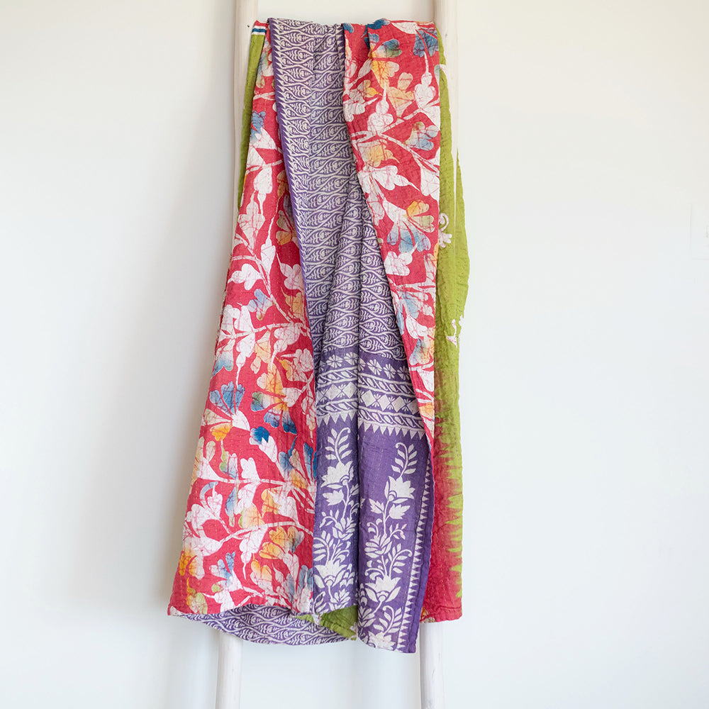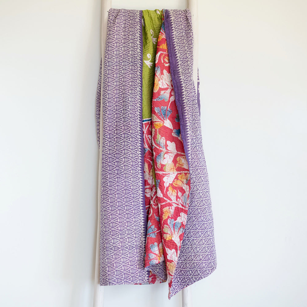 - multiple quilted layers of reclaimed sari material make this Kantha throw thicker and warmer