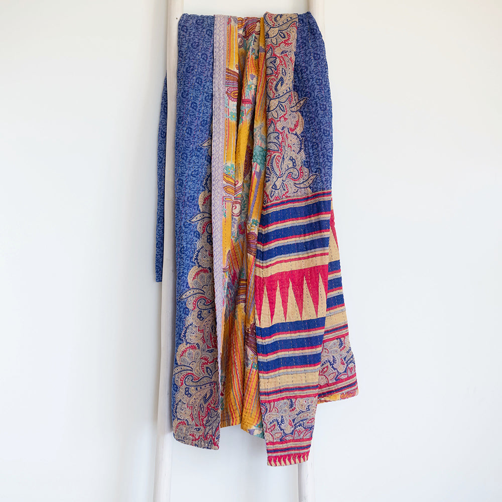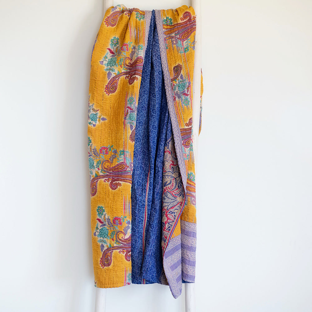 - multiple quilted layers of reclaimed sari material make this Kantha throw thicker and warmer