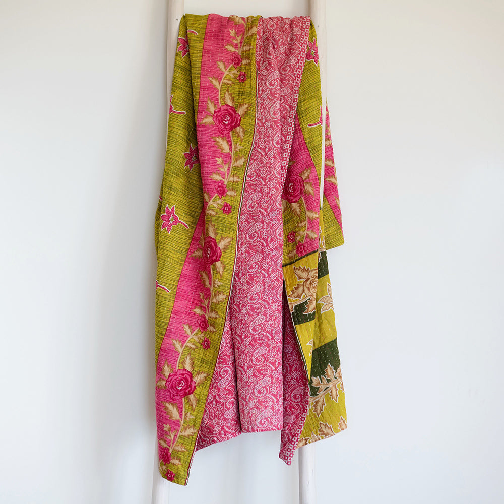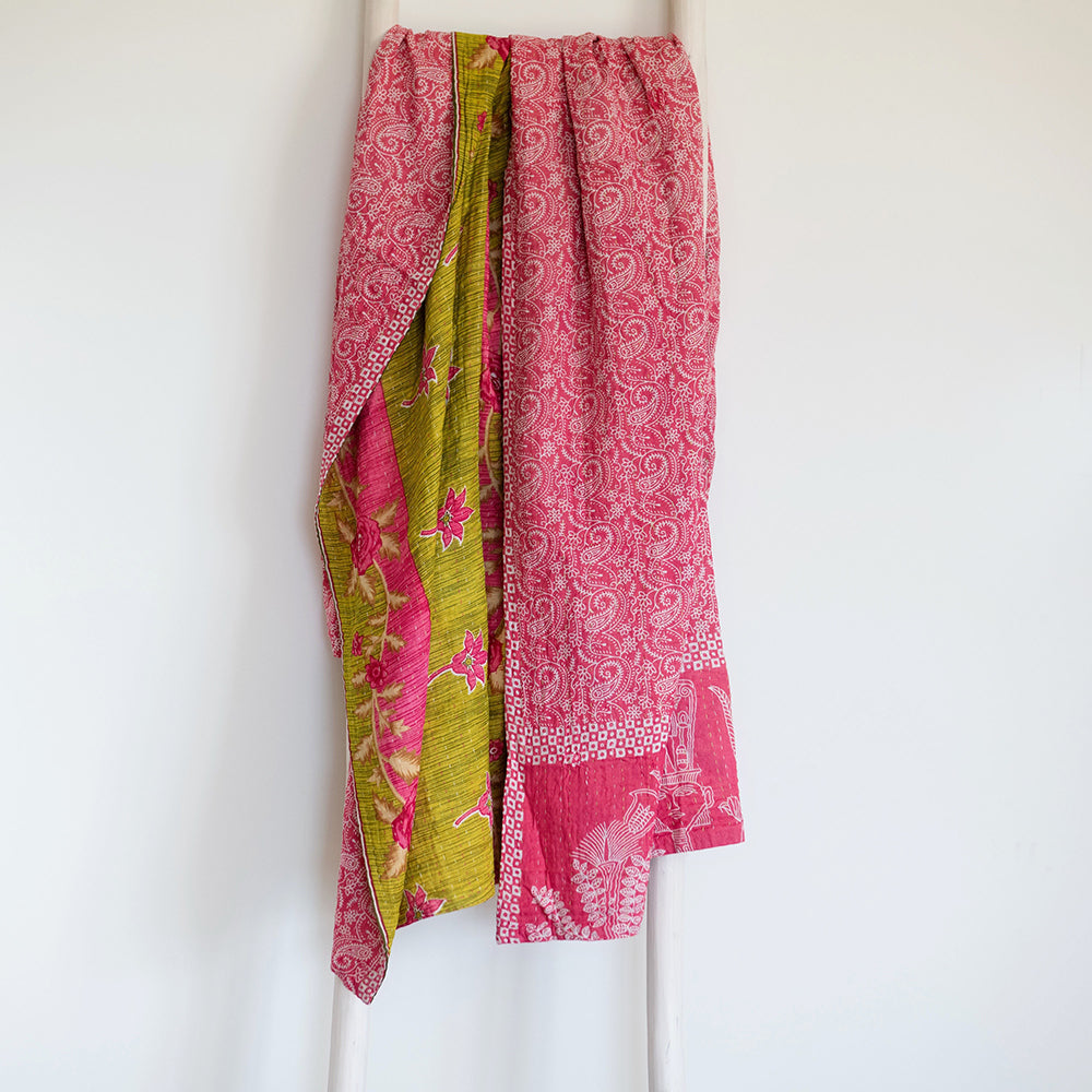 - multiple quilted layers of reclaimed sari material make this Kantha throw thicker and warmer