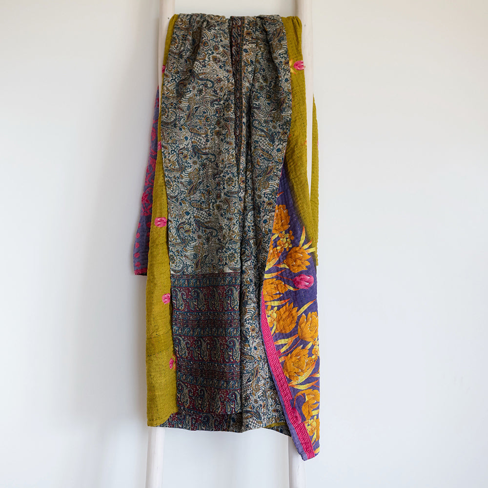 - multiple quilted layers of reclaimed sari material make this Kantha throw thicker and warmer