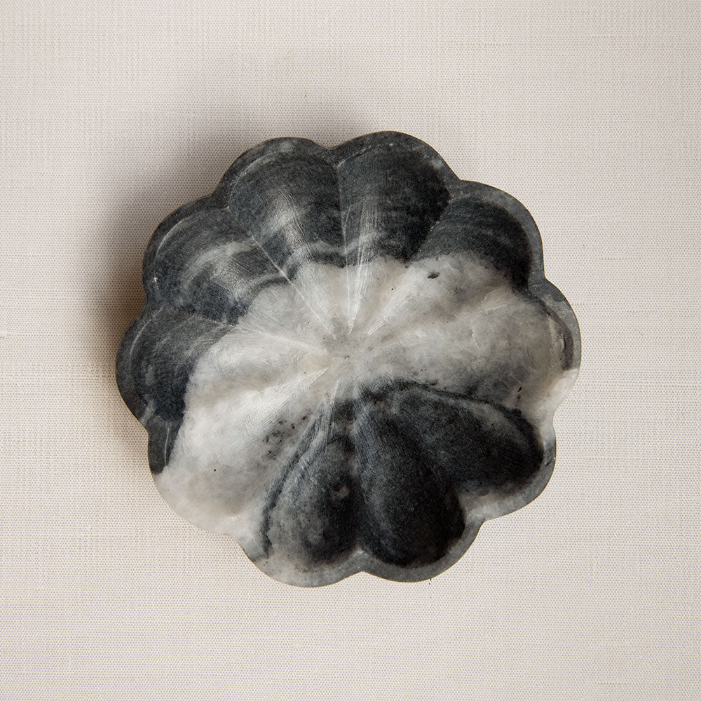These artfully sculpted marble trays are entirely handcrafted by skilled artisans in India. Reminiscent of flowers in bloom, these marble petal trays feature an intricate scalloped edge. Color and veining will vary in natural stone.