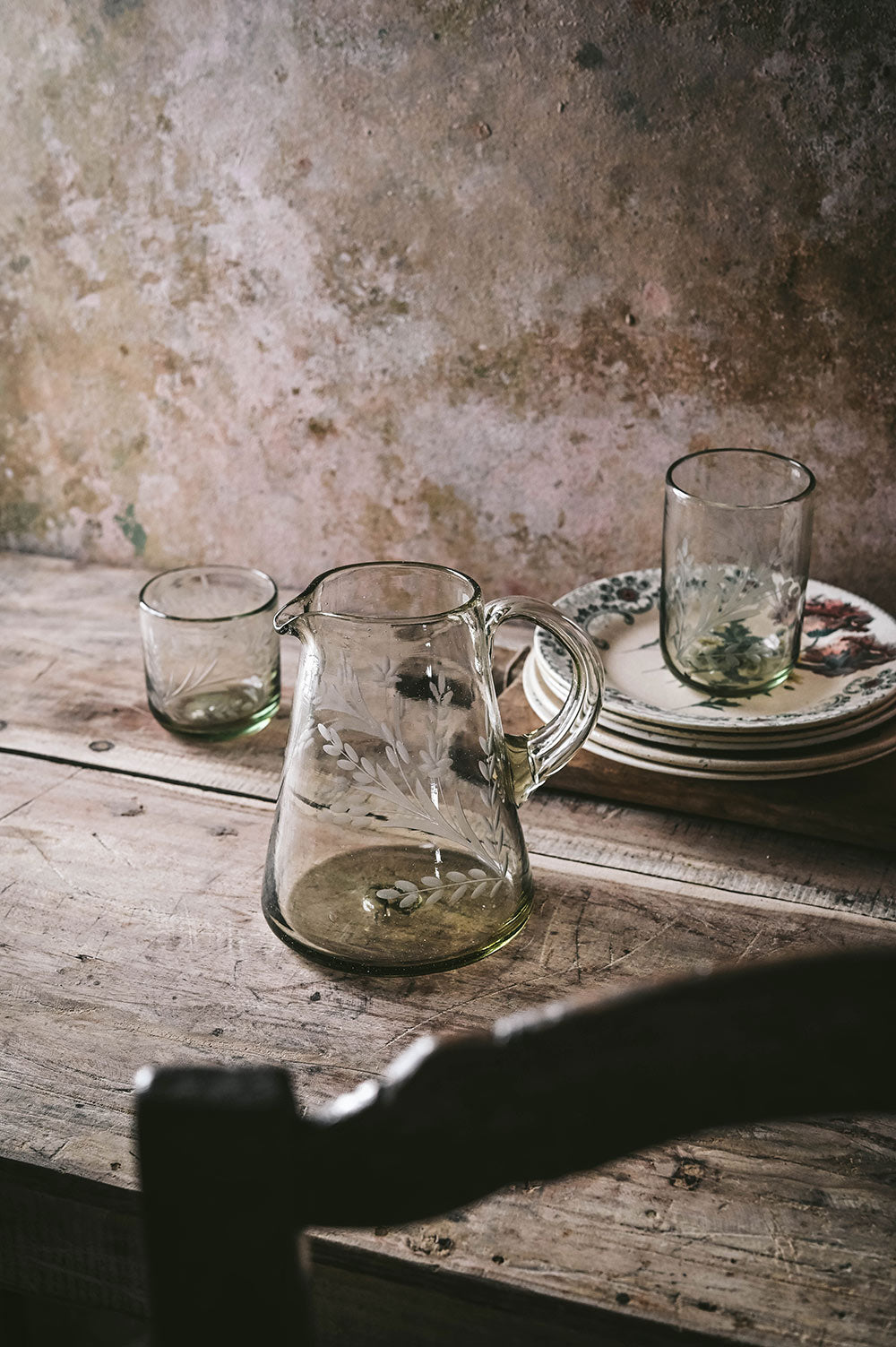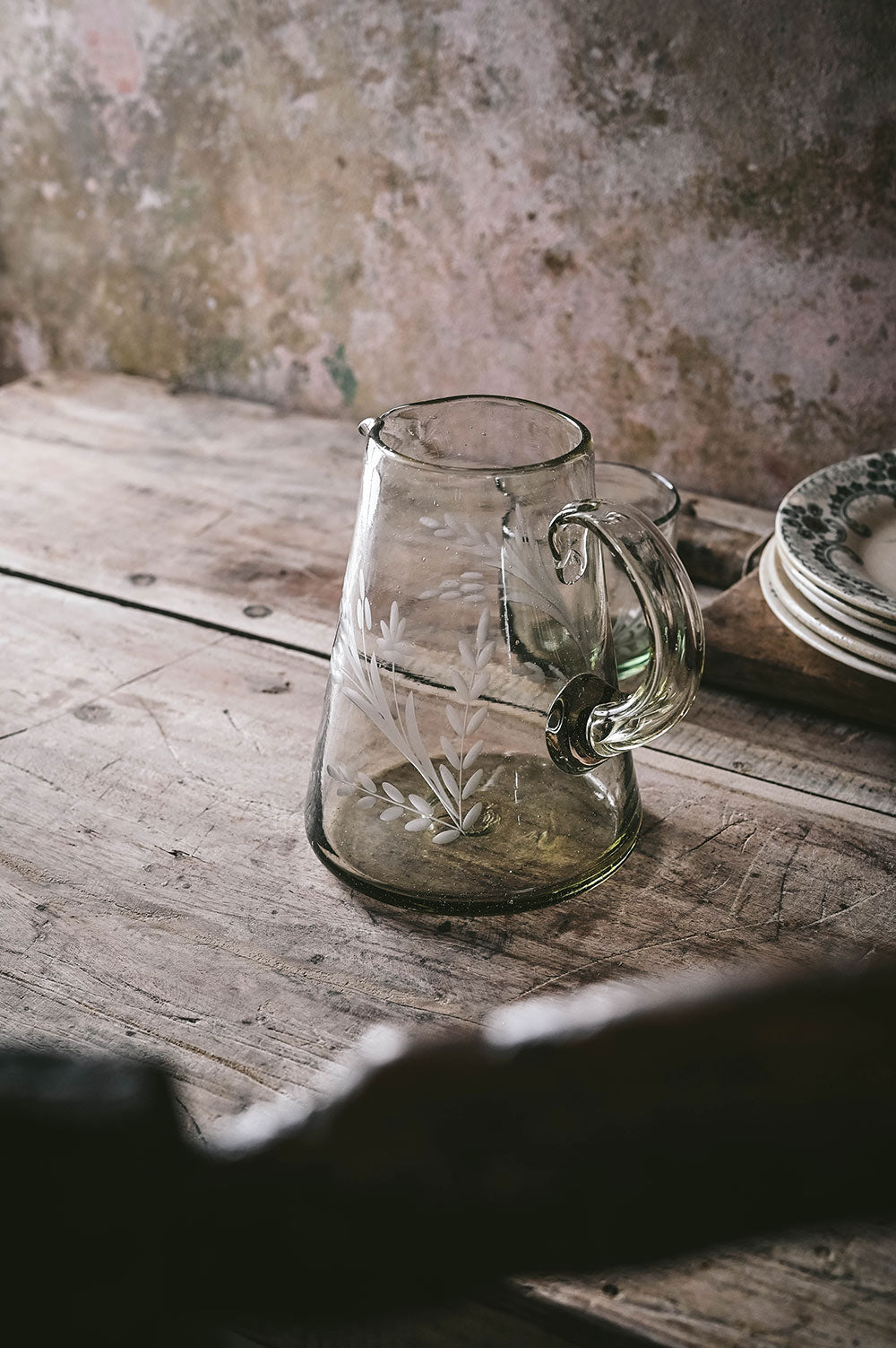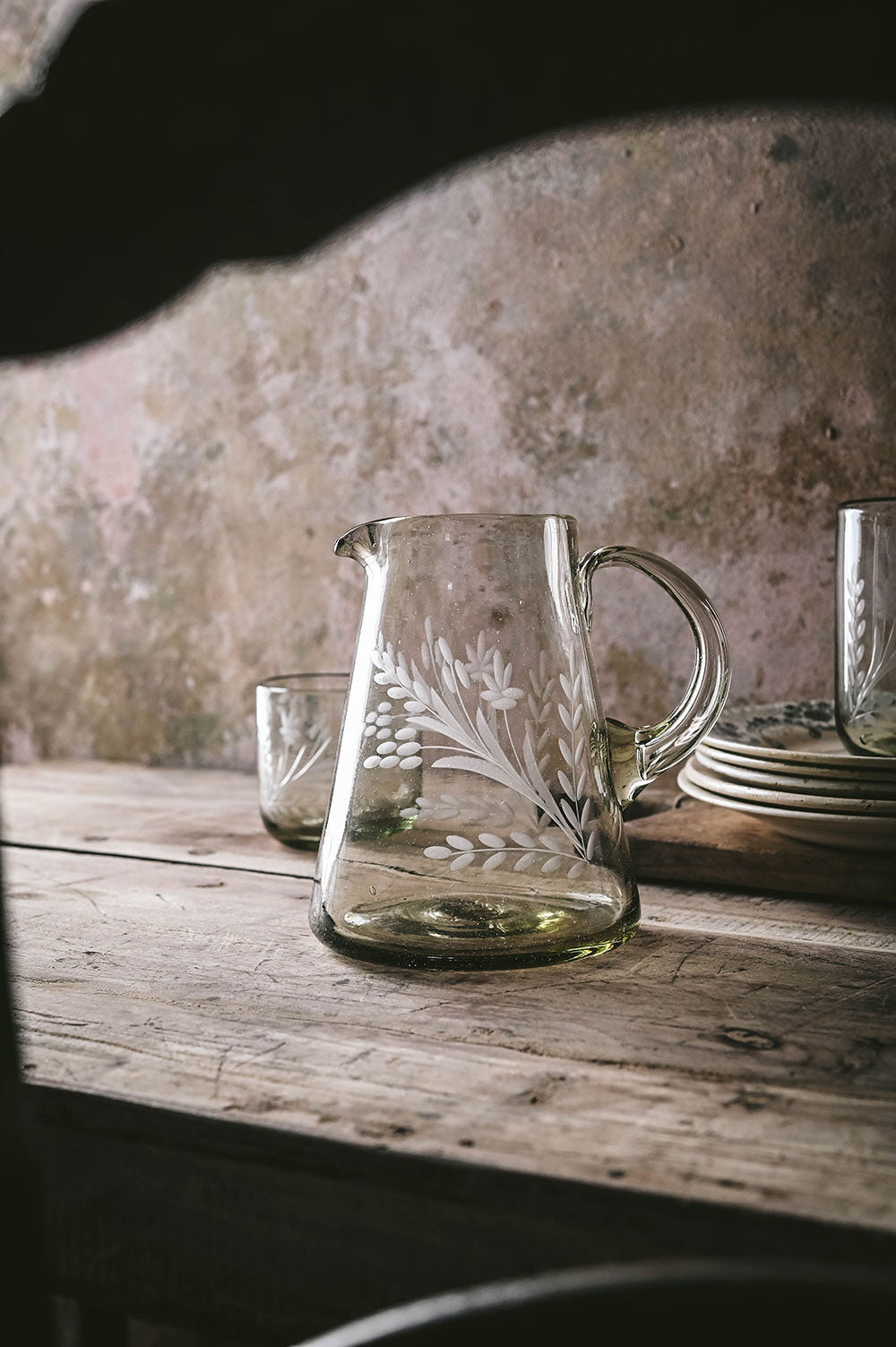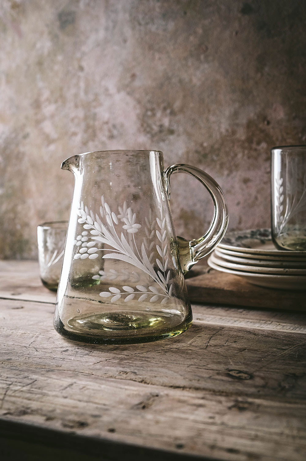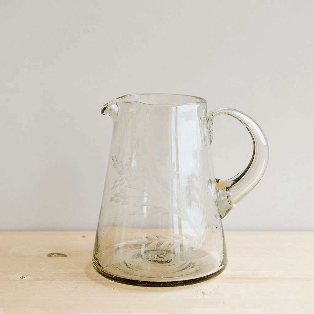 Flare Etched Artisan Glass Pitcher