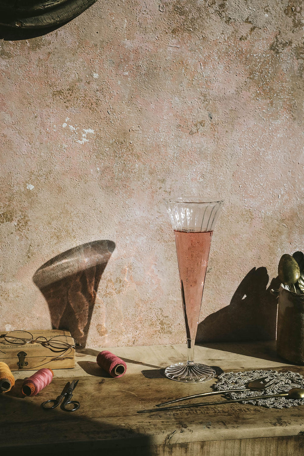 These gorgeous mouth-blown glasses feature a delicate raised pattern.