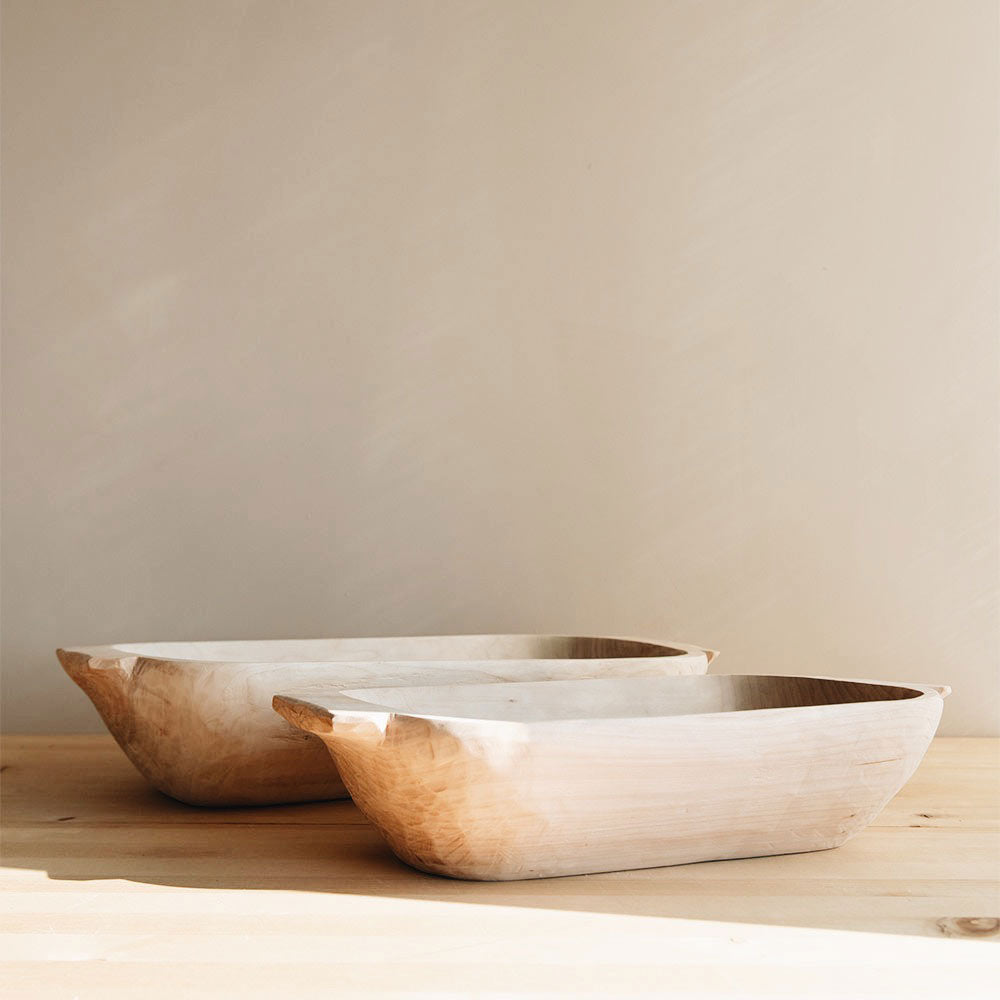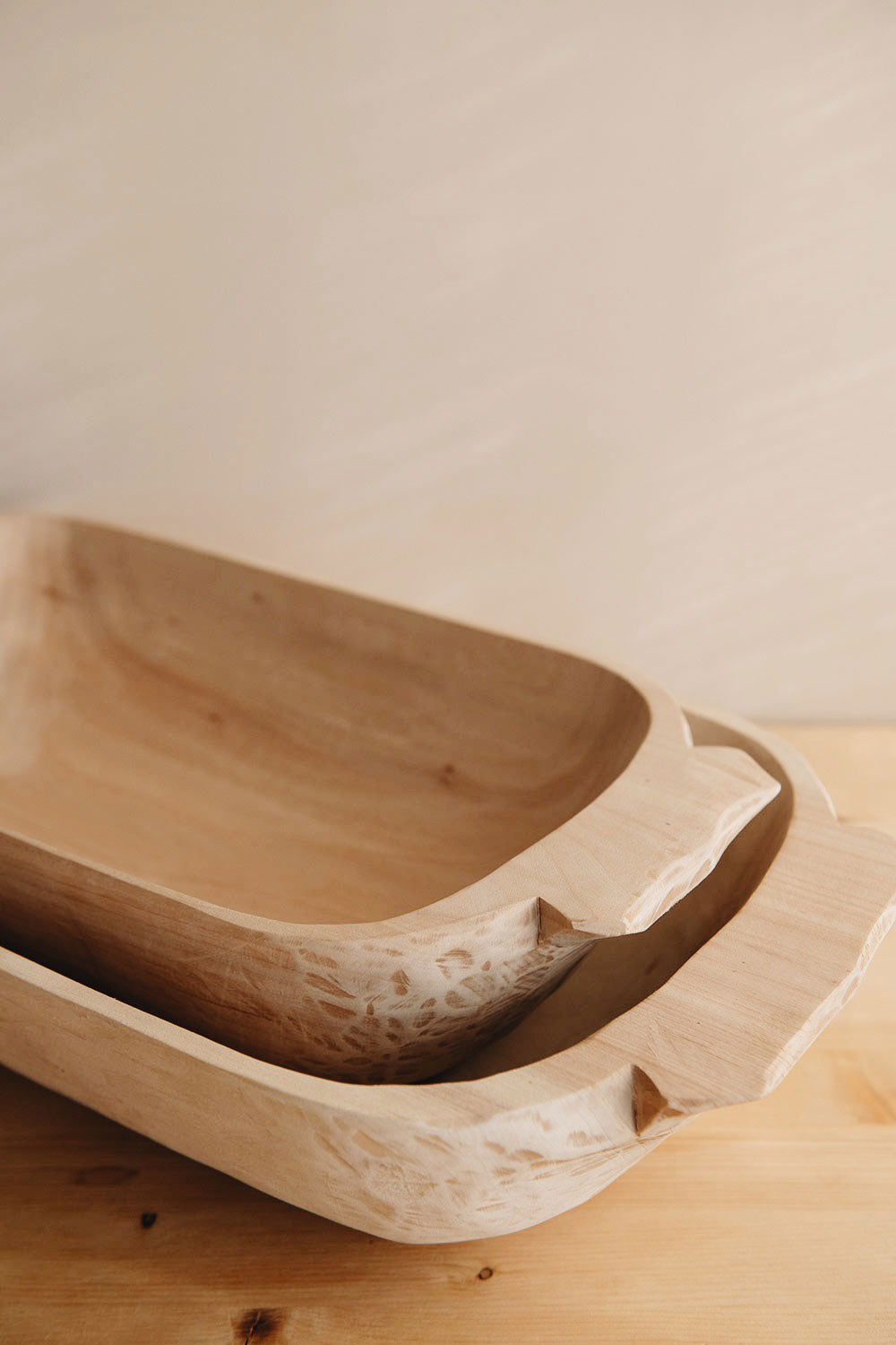 Each wooden bowl is hand-carved by a family of artisans in a small village in Romania. Their craft, passed down through generations, gives every piece a natural beauty that feels both rustic and refined. Made for daily use, these bowls will develop a unique patina over time. Hand wash to preserve the wood, leaving it in its natural state or sealing with linseed oil if you prefer. Our collection is crafted from raw, untreated wood, allowing each bowl to evolve with character the more it is used. Use, wash, repeat, and watch it grow more beautiful with age.