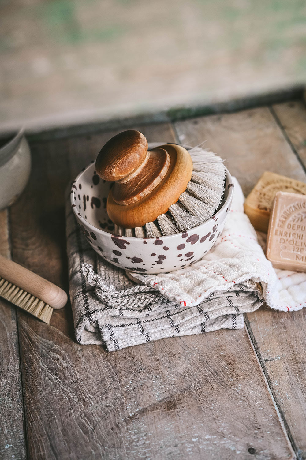 A small splatterware bowl made for daily use. Perfect as a resting place for dish brushes, or for holding salt, rings, and small essentials around the home.
