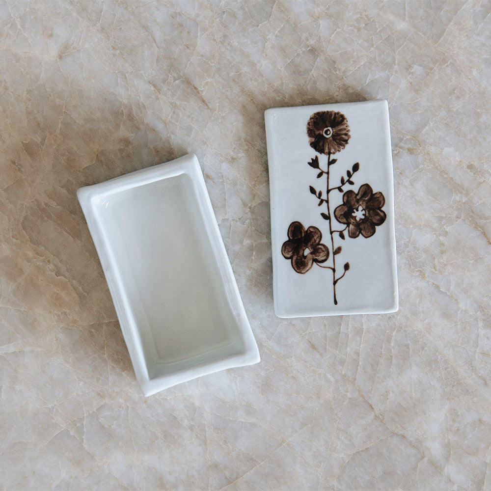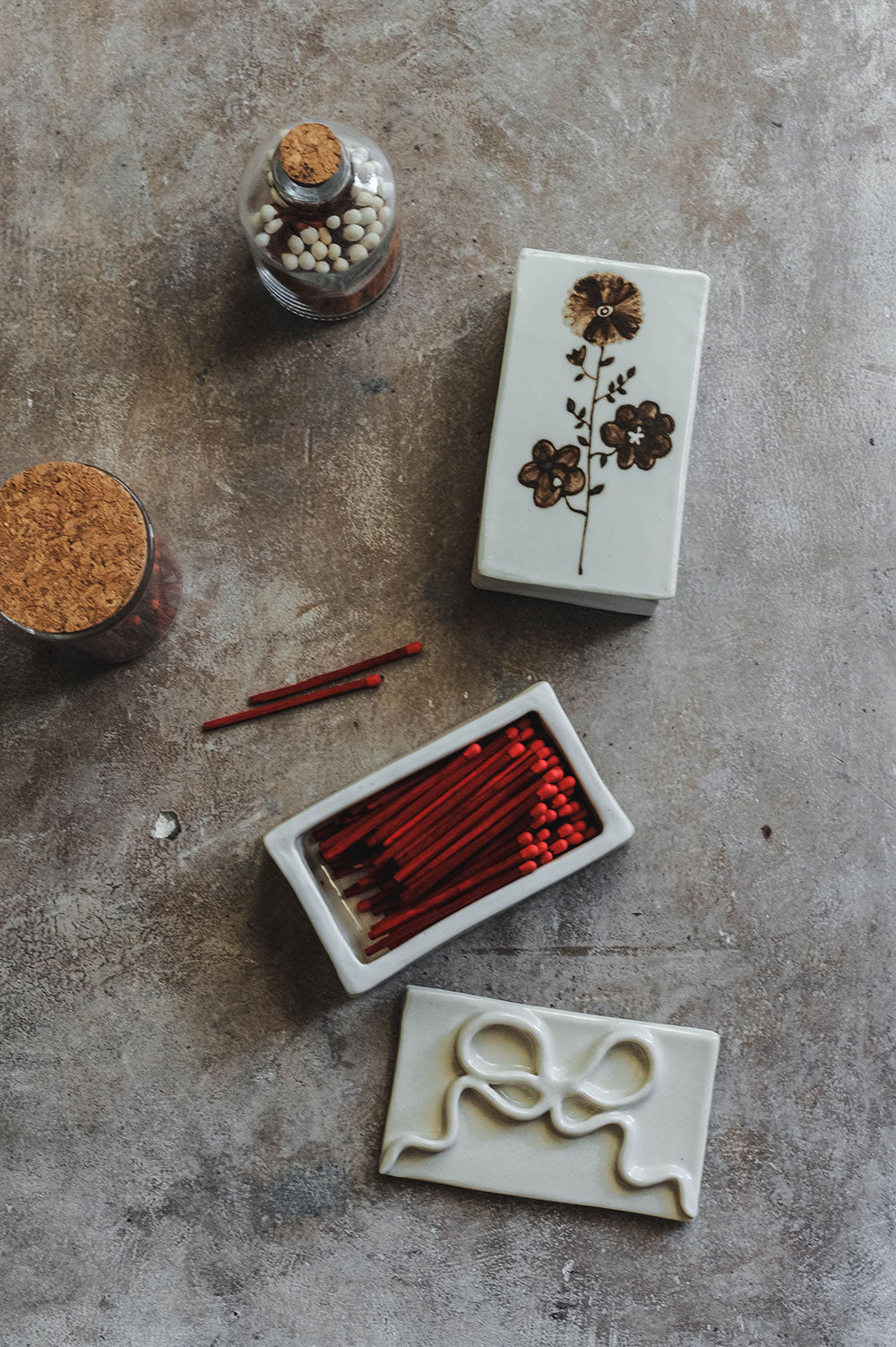 A beautiful blend of form and function, this handmade ceramic matchbox is crafted to be treasured. Each piece is shaped and glazed by hand, with thoughtful details that make it feel like a small heirloom. Designed to hold standard matches, it's perfect beside a candle, on a mantle, or as a unique gift for someone who loves the little things. Practical, timeless, and made to last.