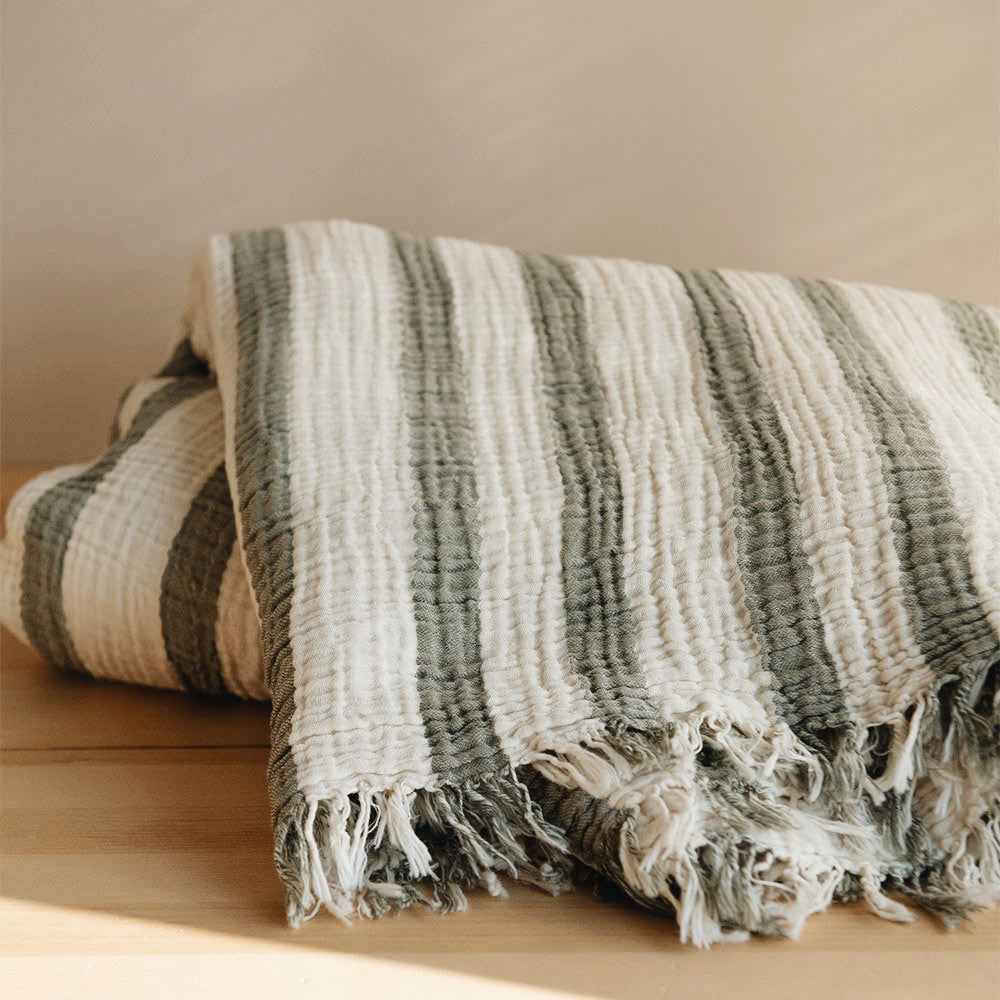 Woven from four layers of soft cotton, this blanket wraps you in comfort and warmth, making it the perfect companion for cooler days.