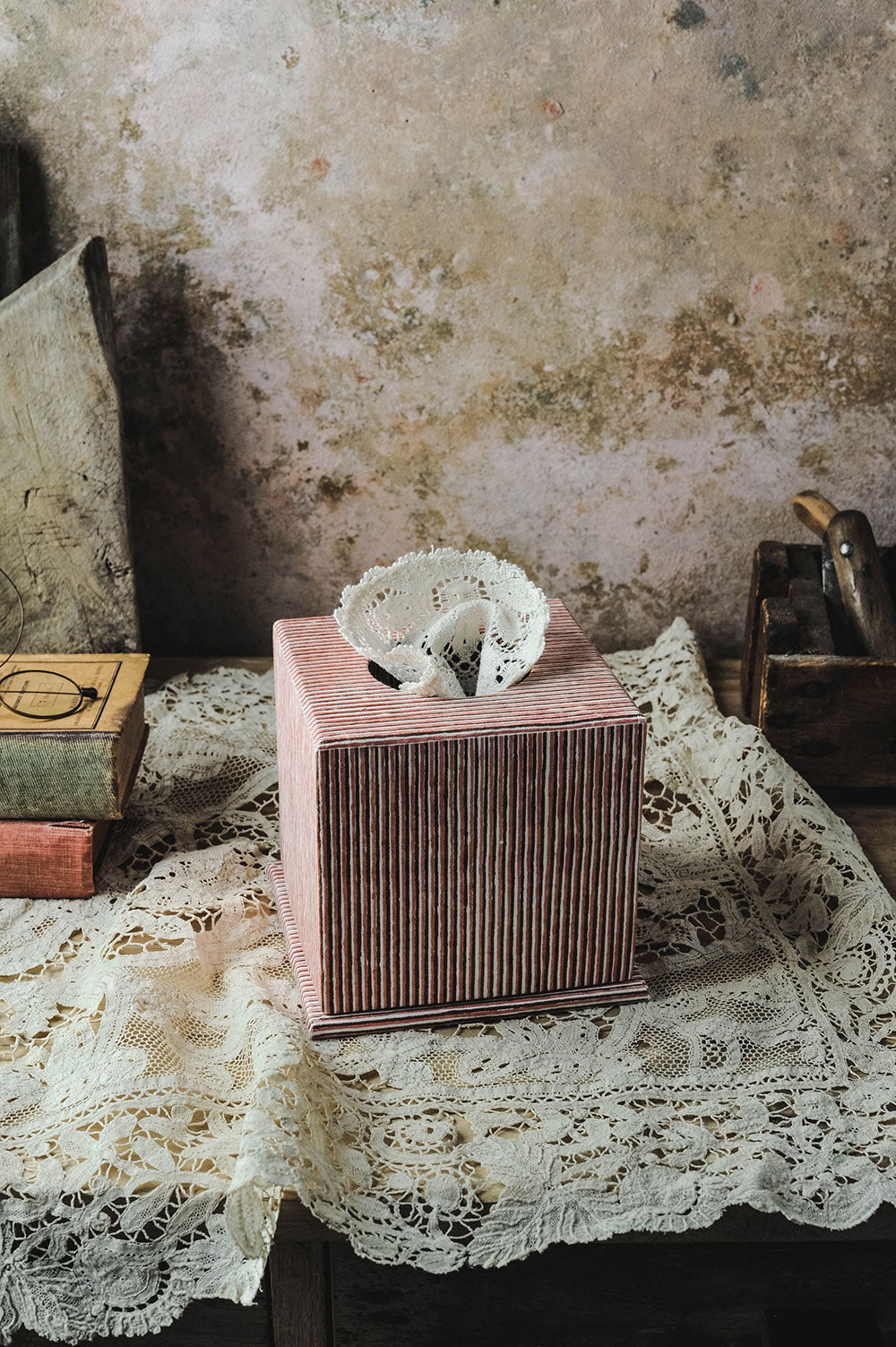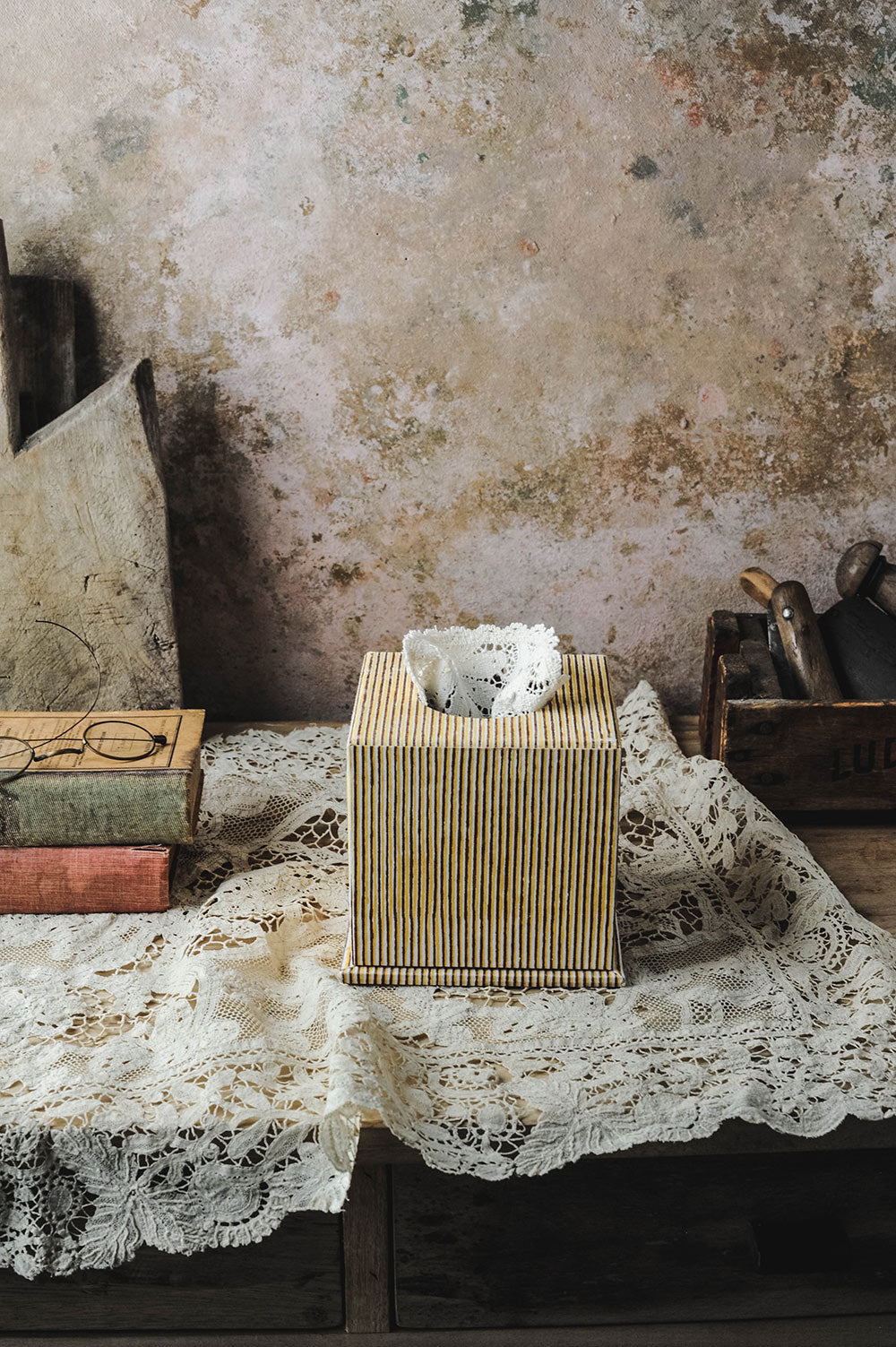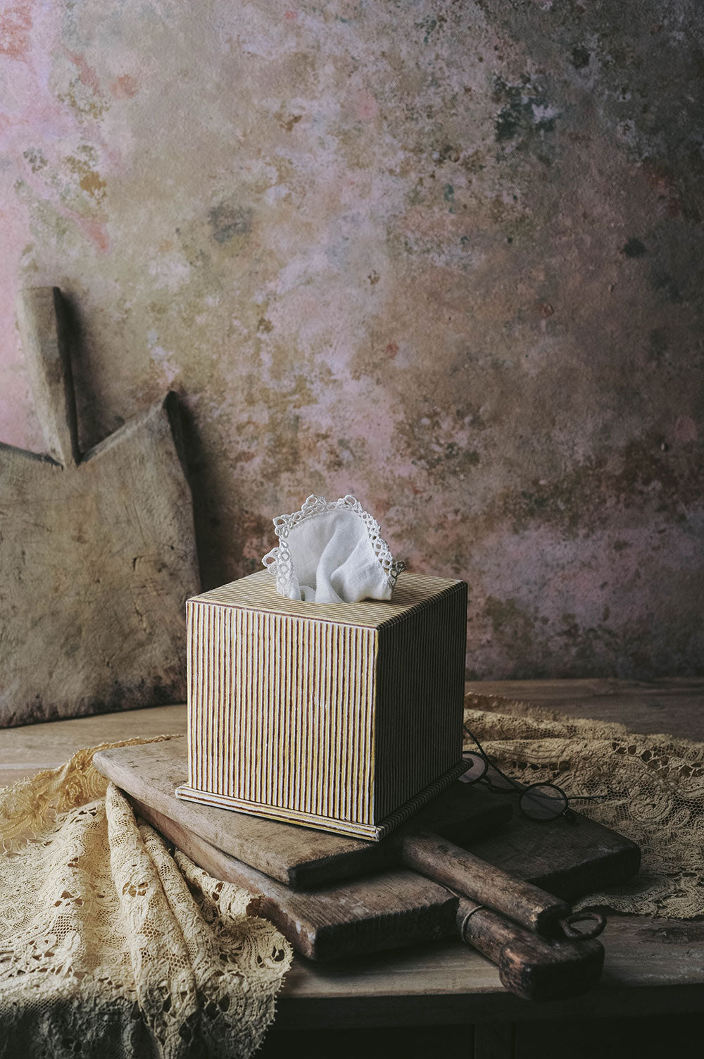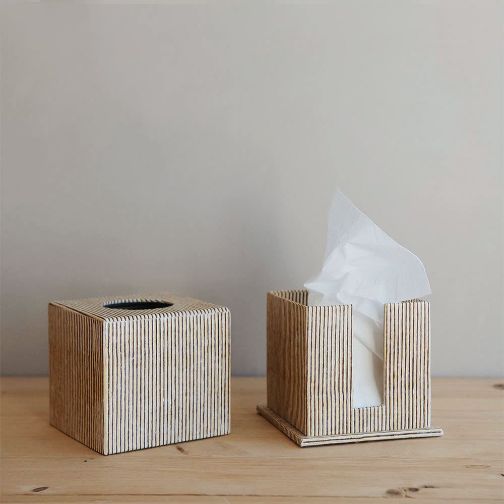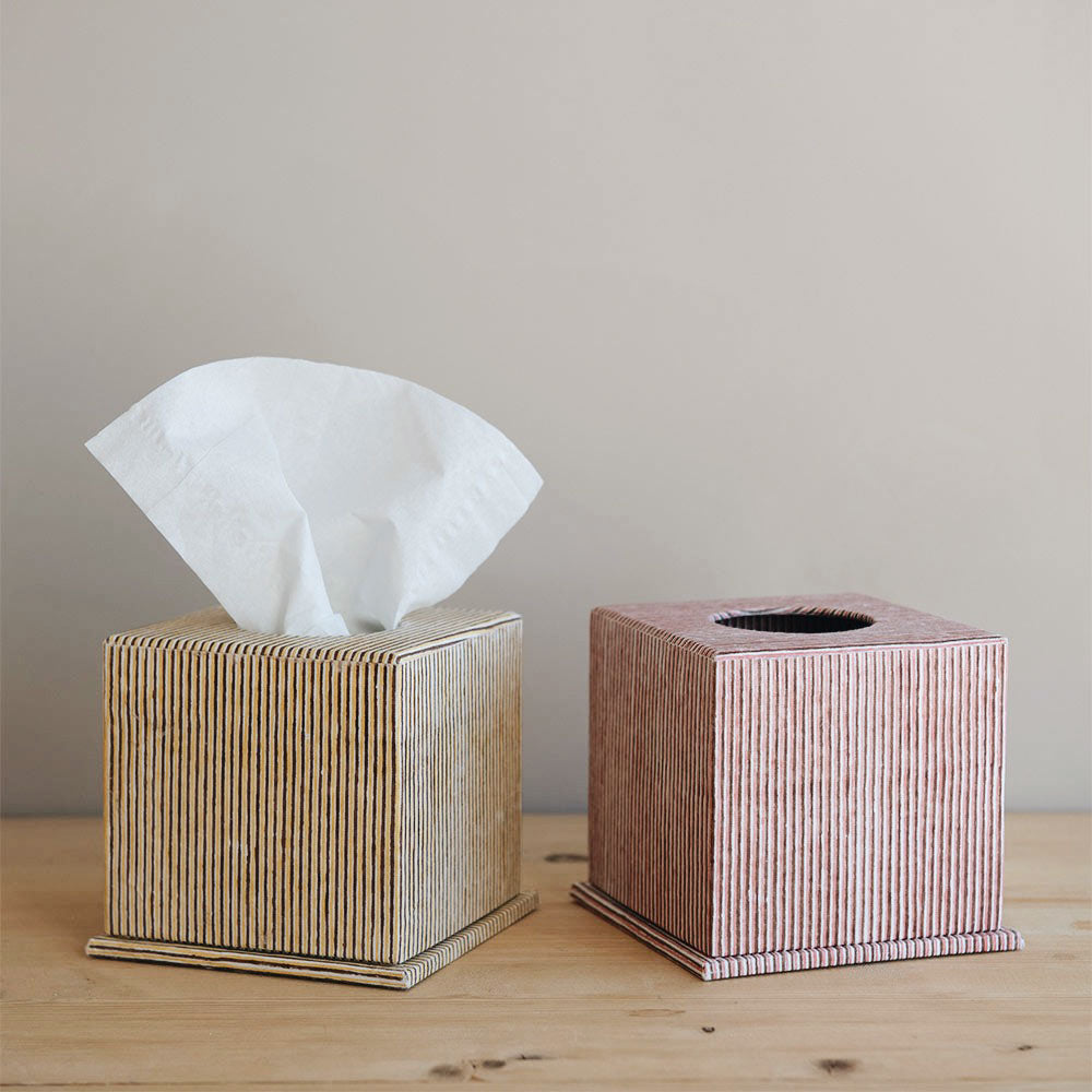 Crafted from recycled cotton handmade paper, these tissue boxes are created by master artisans in Jaipur who have been making vintage-style boxes and cartonnage products for generations. Each design is hand-screen printed and produced in small batches.