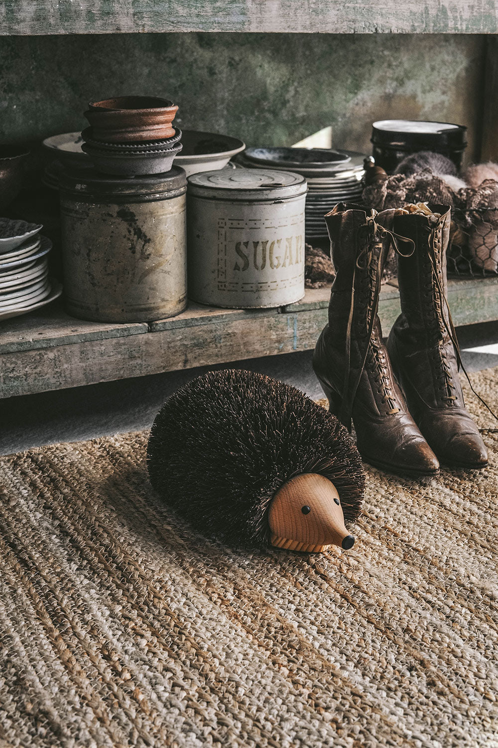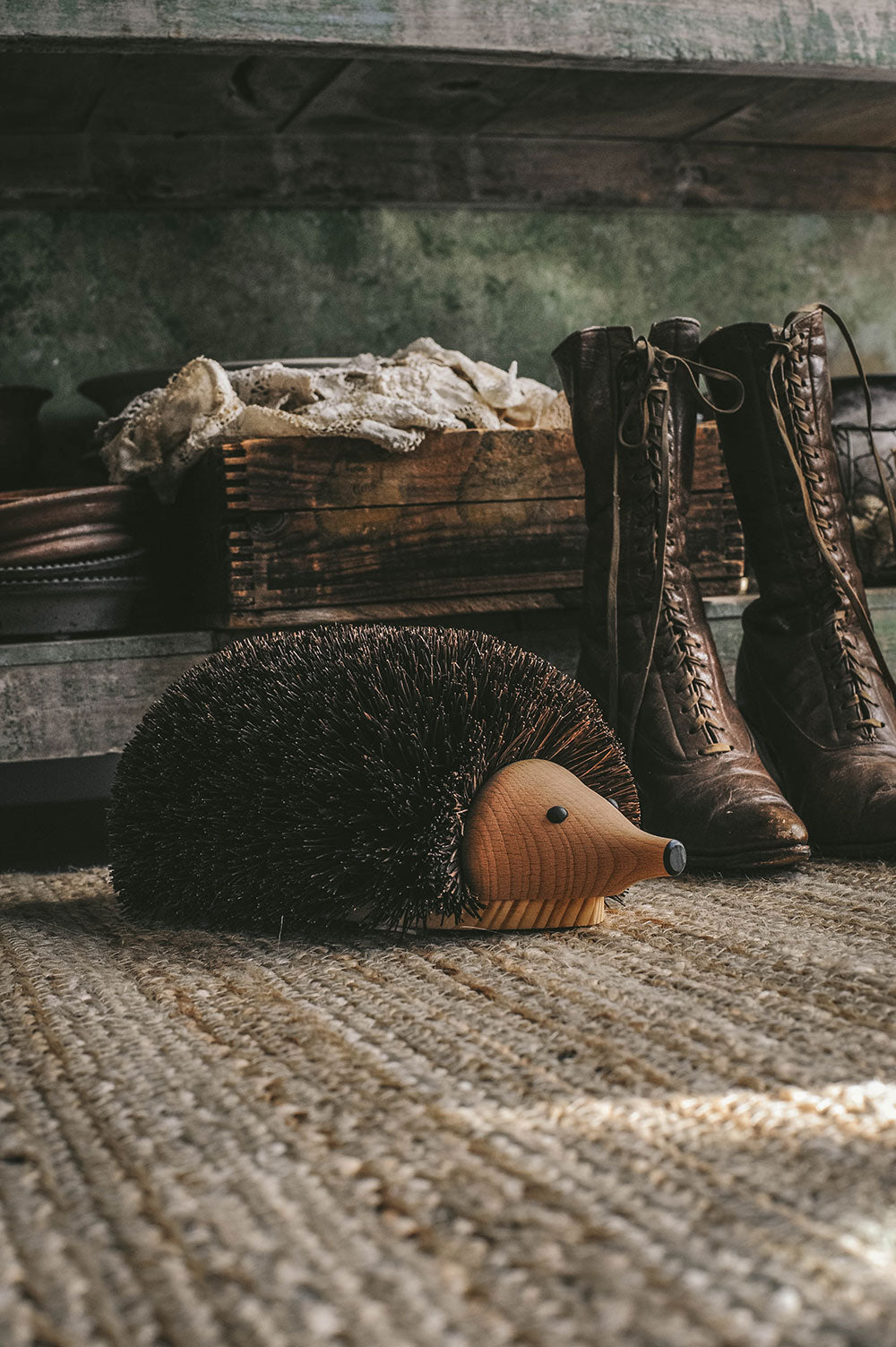 Charming and practical, this wooden hedgehog shoe cleaner will also prop a door. Handcrafted with care, it's as functional as it is adorable. Perfect for cozy corners and woodland-inspired spaces.